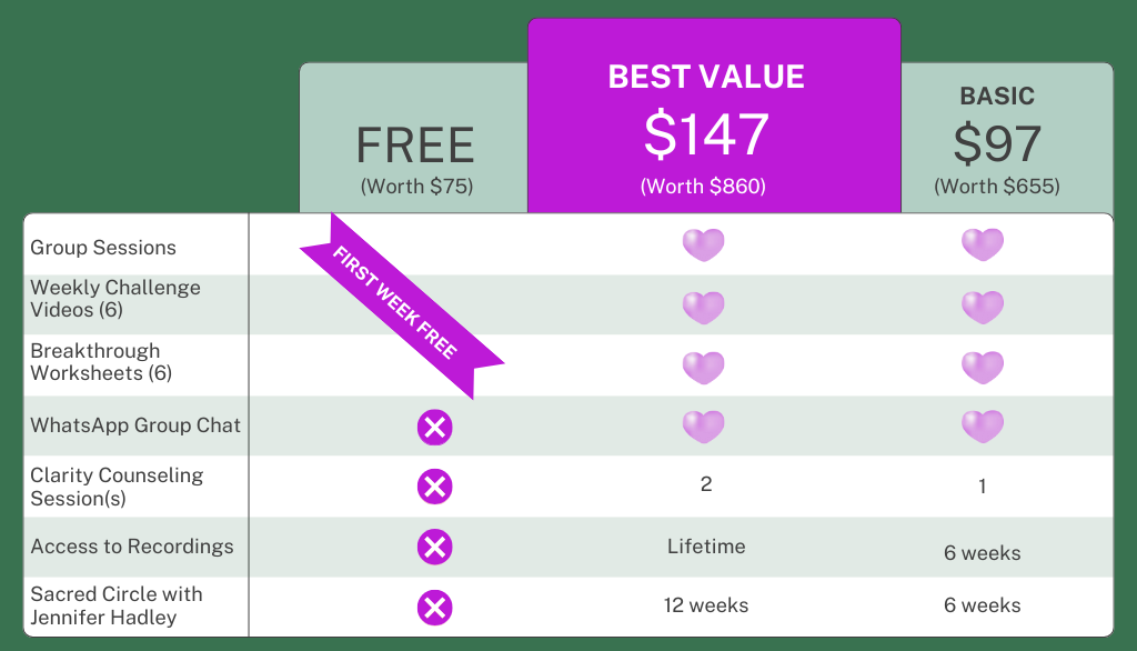 BONUS UPGRADE: Add Eliminate Your Blocks to Success - In All Areas of Your Life upon checkout for 50% OFF. Join Jennifer for this Online LIVE Workshop and Q&A on Zoom video, phone or get the download and listen later! If you'd like to learn more about this, click here.